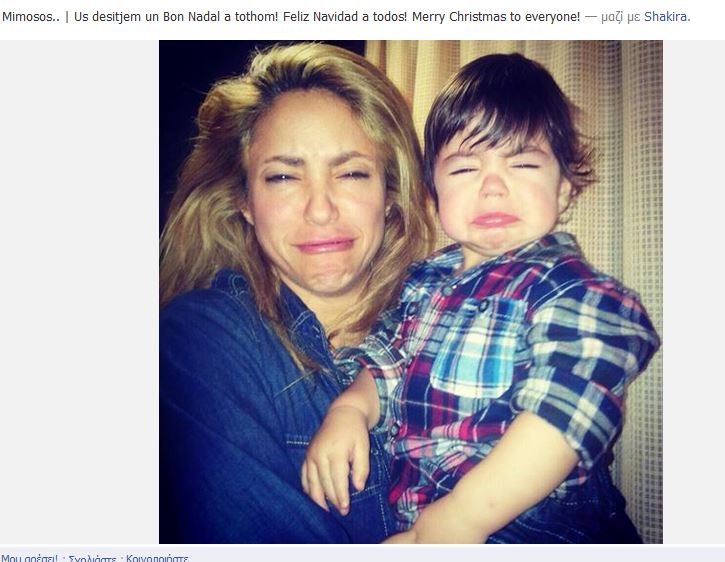 Οι περισσότεροι ξένοι αθλητές είναι ακομπλεξάριστοι και το αποδεικνύουν αυτό σε κάθε ευκαιρία. Ο Ζεράρ Πικέ της Μπαρτσελόνα ανέβασε πριν από λίγο στην σελίδα του στο Facebook μια φωτογραφία της γυναίκας του Σακίρα με τον γιο τους Μίλαν, την οποία αρκετοί στην θέση του θα φρόντιζαν να διαγράψουν. O 26χρονος άσος ευχήθηκε καλά Χριστούγεννα σε όλους.