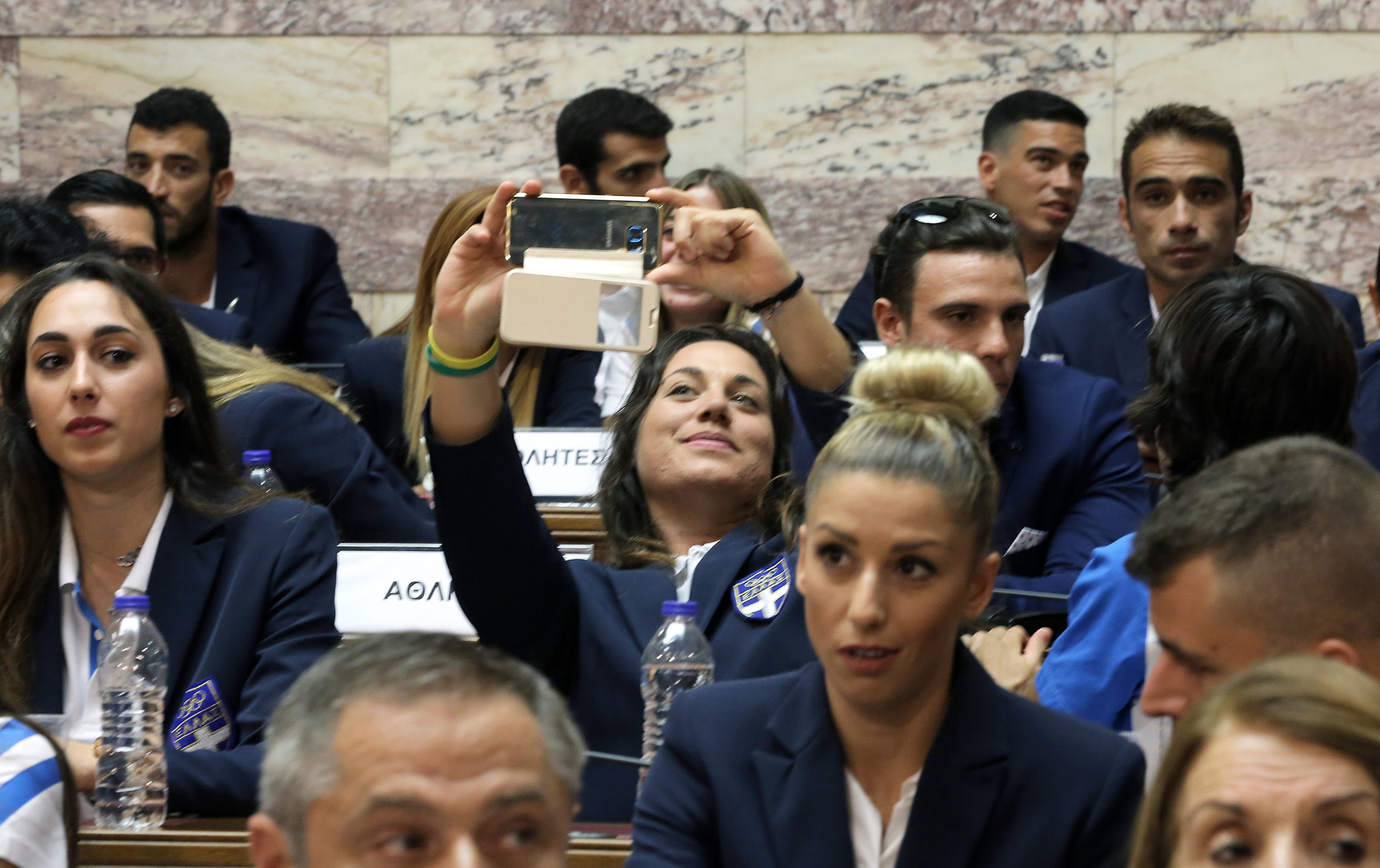 Κατά την ειδική εκδήλωση, που οργάνωσε προς τιμήν τους η Επιτροπή Μορφωτικών Υποθέσεων της Βουλής, οι αθλητές βραβεύτηκαν με τιμητική πλακέτα για την προσφορά τους στον Αθλητισμό και ενώπιον του προέδρου της Βουλής, Νίκου Βούτση, των πολιτικών αρχηγών και του υφυπουργού Πολιτισμού και Αθλητισμού, Σταύρου Κοντονή απηύθυναν σύντομες ομιλίες.