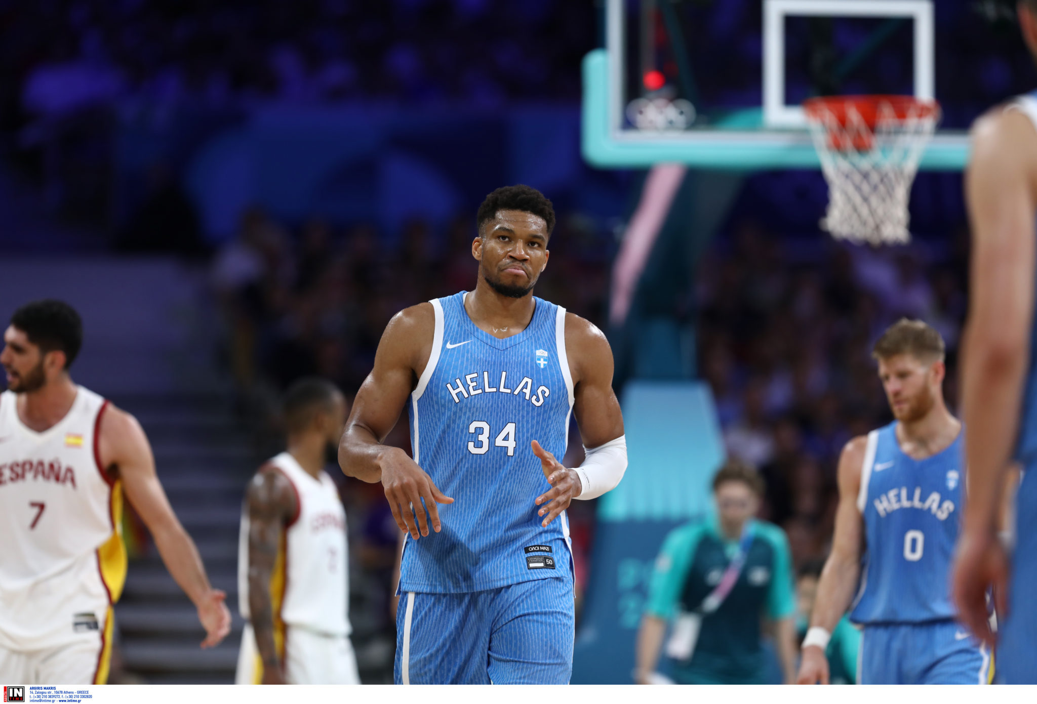 Σε έναν ιδιαίτερα κρίσιμο αγώνα για την υπόθεση πρόκριση στους «8» του Ολυμπιακού Τουρνουά μπάσκετ των ανδρών, η Εθνική Ελλάδας, αν και επέστρεψε από το -16 ισοφαρίζοντας σε 71-71, ηττήθηκε από την Ισπανία, με 84-77, στη Λιλ, στο πλαίσιο της 2ης αγωνιστικής του 1ου ομίλου.