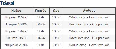 * Σε περίπτωση που σημειωθούν τρεις νίκες (ανακηρύσσεται ο πρωταθλητής), οι παρακάτω ημερομηνίες της διεξαγωγής των playoffs δεν θα πραγματοποιηθούν.
