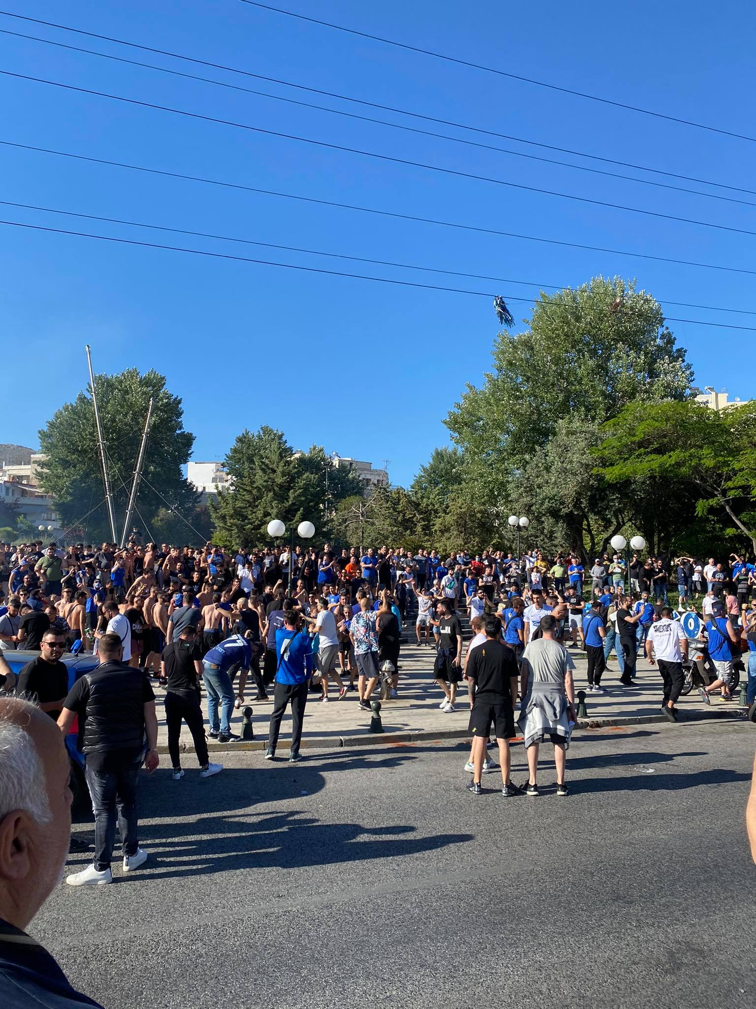 Λόγω βέβαια της πανδημίας με τον κορονοϊό, οπαδοί δεν υπήρχαν μέσα στο γήπεδο, αλλά γύρω απ’ αυτό.