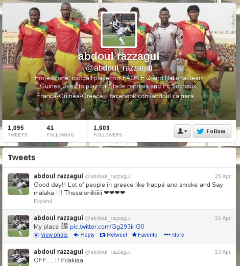 Όπως έγραψε ο διεθνής επιθετικός της Γουινέας στον προσωπικό του λογαριασμό στο twitter, “στους περισσότερους ανθρώπους στην Ελλάδα αρέσει ο φραπέ και το τσιγάρο και να λένε τη λέξη «μ@λ@κ@»”.