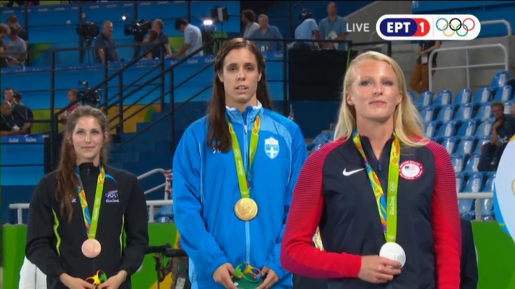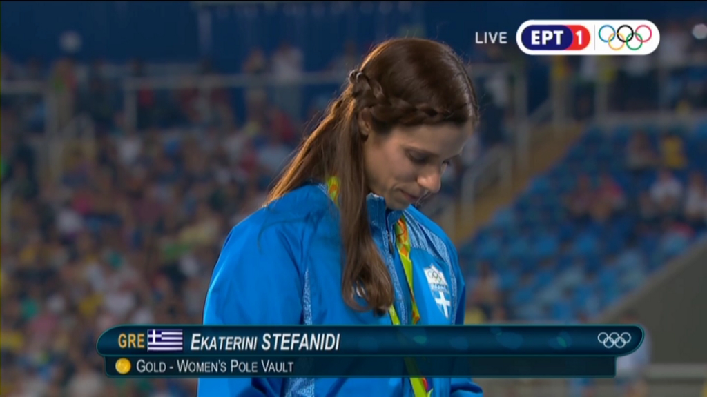 Η ανάκρουση του εθνικού ύμνου προκάλεσε συγκίνηση στην Ελληνίδα πρωταθλήτρια που με άλμα στα 4,85μ. κατέκτησε το 6ο μετάλλιο για τη χώρα μας στους Ολυμπιακούς του Ρίο.