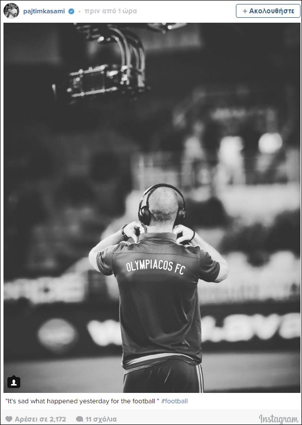 Με ανάρτησή του στο Instagram ο Παϊτίμ Κασάμι εξέφρασε τη θλίψη του για τα έκτροπα στο γήπεδο της Λεωφόρου και τη ματαίωση του ντέρμπι.