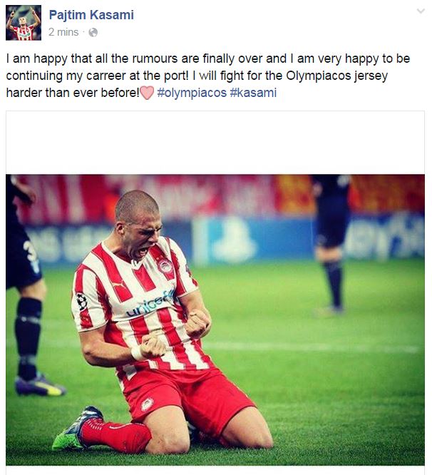 Ο… φευγάτος μέχρι πριν από λίγες ημέρες, Παϊτίμ Κασάμι, έμεινε στον Ολυμπιακό, δηλώθηκε στη λίστα του Champions League και εξέφρασε τη χαρά του για το ότι θα συνεχίσει την καριέρα του στο λιμάνι.