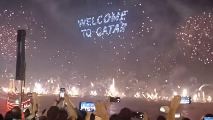 Την παραμονή της έναρξης του κορυφαίου αθλητικού γεγονότος στον κόσμο, οι Καταριανοί έκαναν τη νύχτα μέρα με εκατοντάδες πυροτεχνήματα που φώτισαν τον ουρανό, για να γιορτάσουν το πρώτο χειμερινό Παγκόσμιο Κύπελλο την ώρα που drones σχημάτιζαν τη φράση «Welcome to Qatar».