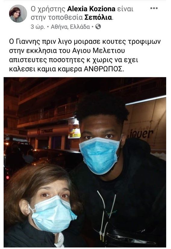 Σε μια κίνηση ανθρωπιάς, μακριά από κάμερες και φώτα της δημοσιότητας προχώρησε ο Γιάννης Αντετοκούνμπο. Ο σούπερ σταρ του NBA και των Μιλγουόκι Μπακς βρέθηκε στα Σεπόλια και συγκεκριμένα στην εκκλησία του Αγίου Μελετίου, μοιράζοντας κούτες με τρόφιμα. Σκοπός του να διανεμηθούν σε ανθρώπους που βρίσκονται σε δυσχερή θέση και το έχουν πραγματικά ανάγκη.