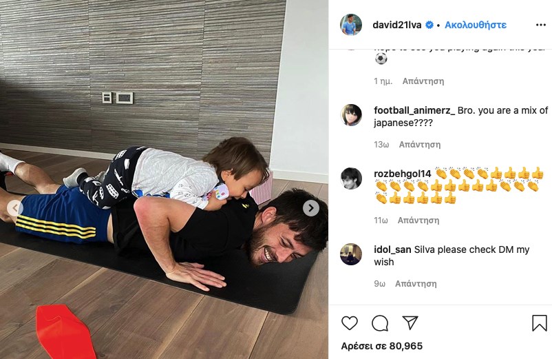 Ο παίκτης της Μάντσεστερ Σίτι, David Silva, συνδυάζει την γυμναστική με το παιχνίδι με τα παιδιά του, ώστε να είναι διασκεδαστικό για όλους.