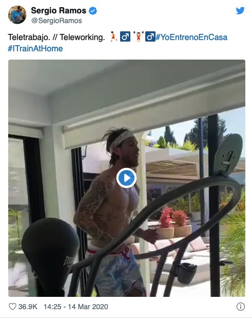 Ο Σέρχιο Ράμος μένει στο σπίτι και κάνει όλες τις προπονήσεις του από εκεί.