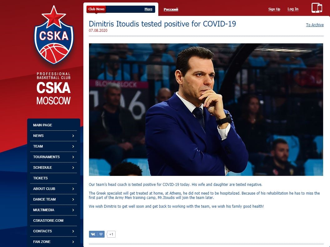 Ο κορονοϊός “χτύπησε” την πόρτα του Δημήτρη Ιτούδη. Ο Έλληνας τεχνικός της ΤΣΣΚΑ Μόσχας, όπως ενημέρωσαν οι Ρώσοι, ανιχνεύτηκε θετικός στον ιό, την ώρα που η γυναίκα του και η κόρη του είναι αρνητικές.