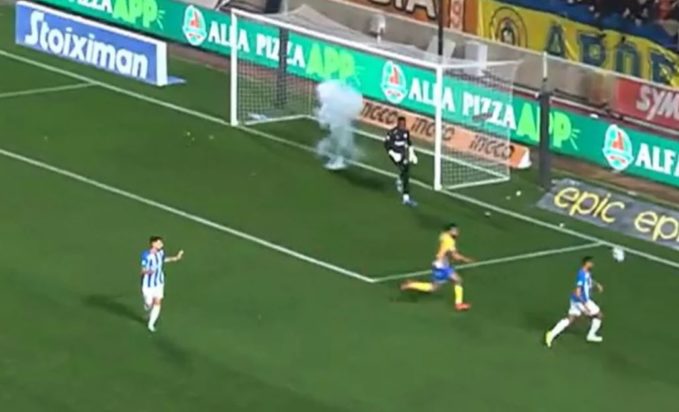 Στο παιχνίδι του ΑΠΟΕΛ με την Ανόρθωση για το κυπριακό πρωτάθλημα κατά την διάρκεια του δεύτερου ημιχρόνου «έσκασε» μια κροτίδα ένα μέτρο δίπλα από τον τερματοφύλακα των φιλοξενούμενων, αλλά ο αγώνας μετά από μια ολιγόλεπτη διακοπή συνεχίστηκε κανονικά.