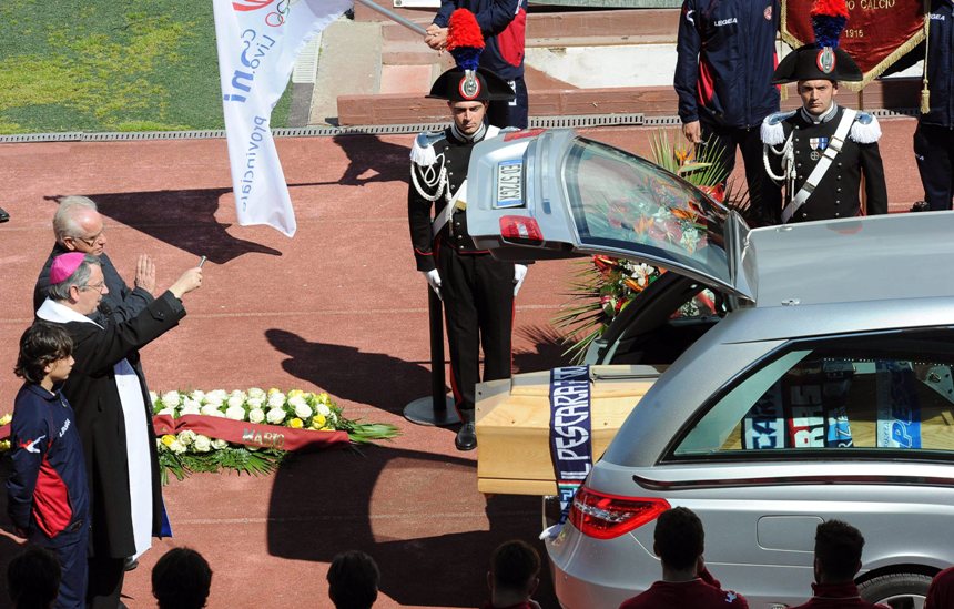 Λαϊκό προσκύνημα στο γήπεδο “Armando Picchi”, με τους οπαδούς της Λιβόρνο να αποχαιρετούν δακρυσμένοι, με χειροκροτήματα τον Πιερμάριο Μοροζίνι.Η νεκροφόρα που μετέφερε τη σωρό του άτυχου αθλητή έκανε το γύρο του γηπέδου, για μια τελευταία φορά. Η κηδεία θα γίνει το πρωί της Τετάρτης στο Μπέργκαμο.