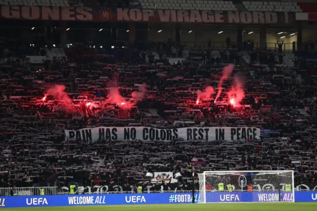 Καθώς ο ΠΑΟΚ θρηνεί την απώλεια επτά «αετόπουλων» στην εξέδρα της γαλλικής ομάδας σηκώθηκε, λίγο πριν τη σέντρα της αναμέτρησης, ένα πανό που έγραφε στα αγγλικά. «Ο πόνος δεν έχει χρώματα. Αναπαυθείτε εν ειρήνη». Την ίδια στιγμή υπήρχε ακόμη ένα που έγραφε στα ελληνικά: « Αναπαυθείτε εν ειρήνη».