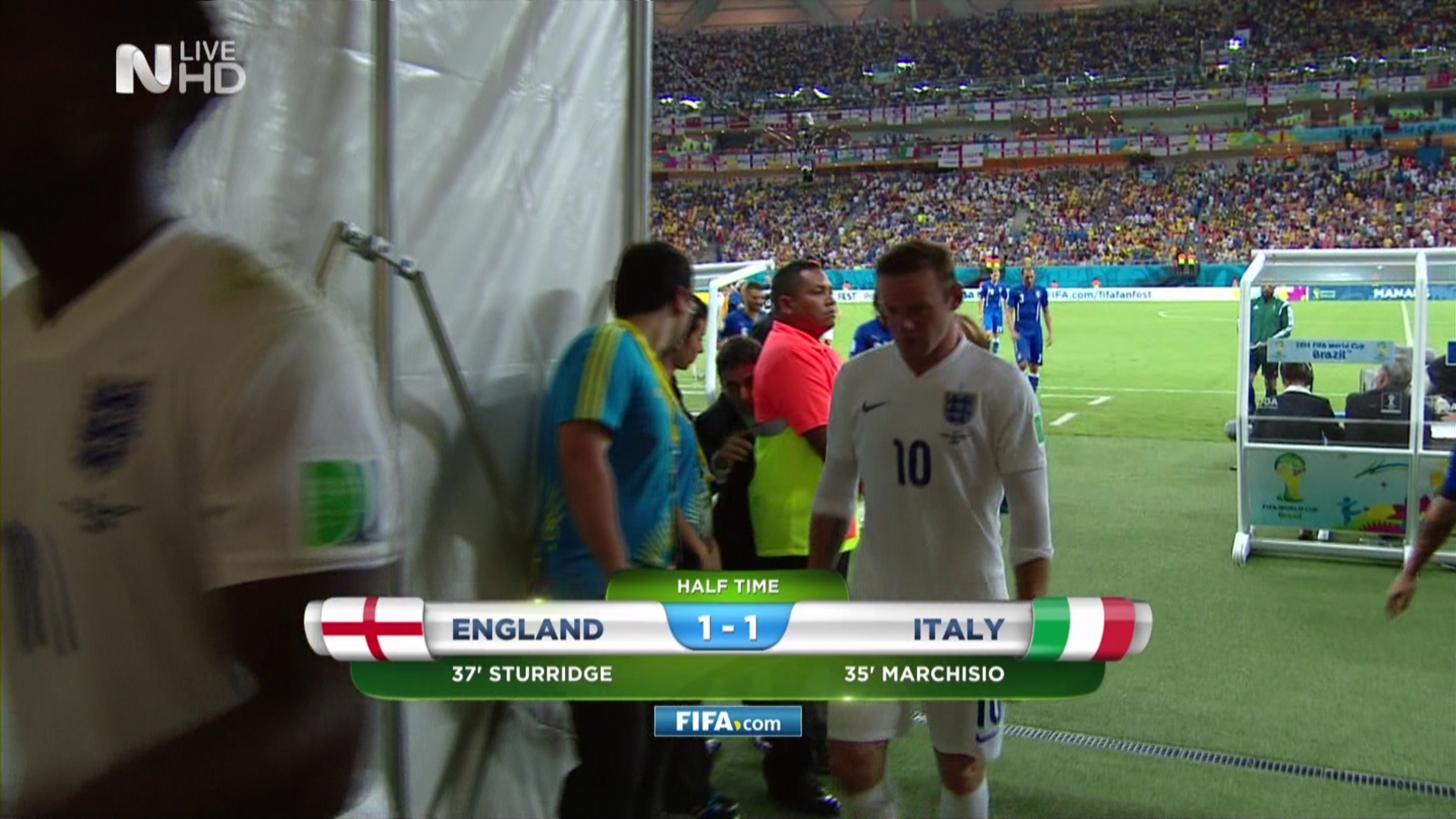 Με εκπληκτικό θέαμα, αρκετές φάσεις και δύο γκολ, ένα για κάθε ομάδα, ολοκληρώθηκε το πρώτο μέρος της αναμέτρησης ανάμεσα στην Αγγλία και την Ιταλία για τον 4ο όμιλο.