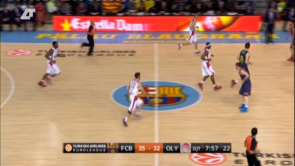 Πολύ δύσκολα έχουν γίνει τα πράγματα για τον Ολυμπιακό, ο οποίος χάνει με 44-55 από τη Μπαρτσελόνα μετά την ολοκλήρωση του τρίτου δεκαλέπτου. Οι πρωταθλητές Ευρώπης προηγήθηκαν με 37-39, αλλά στην συνέχεια υπέπεσαν σε αρκετά λάθη με συνέπεια να βρίσκονται στο -11.