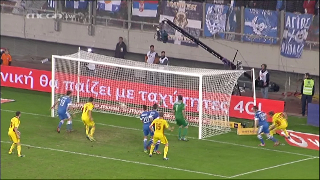 Με κεφαλιά του Στάνκου μετά από εκτέλεση φάουλ η Ρουμανία ισοφάρισε την εθνική μας στο 19.