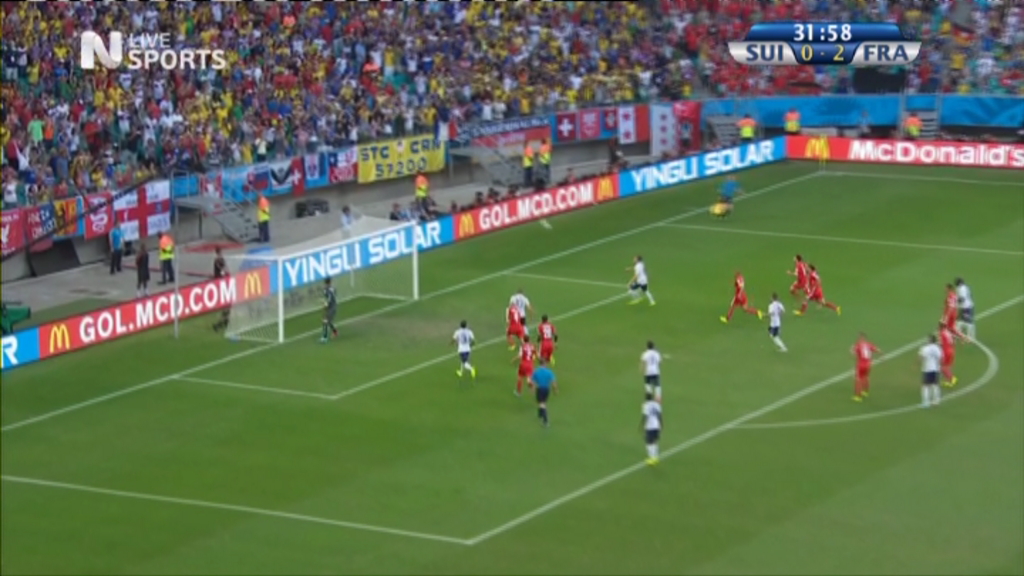 Καταιγιστική η Γαλλία έχει μετατρέψει σε περίπατο τον αγώνα με την Ελβετία, όπως μαρτυρά το 3-0 του πρώτου ημιχρόνου. Οι “τρικολόρ” άνοιξαν το σκορ στο 17 με τον Ζιρού και διπλασίασαν τα τέρματά τους στο 18 με τον Ματουιντί. Το 3-0 έγραψε στο 40 ο Βαλμπουενά. Στο 33 ο Μπενζεμά εκτέλεσε πέναλτι, απέκρουσε ο Μπενάλιο και ο Καμπάιγ που πήρε το ριμπάουντ έστειλε τη μπάλα στο δοκάρι.