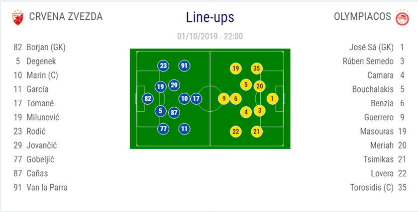 Ο Ερυθρός Αστέρας φιλοξενεί τον Ολυμπιακό στο Βελιγράδι, στο πλαίσιο της δεύτερης αγωνιστικής της φάσης των ομίλων του Champions League.