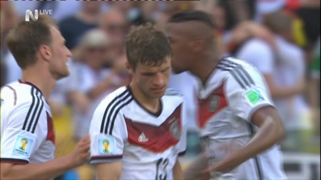 Διαστάσεις θριάμβου παίρνει η νίκη της Γερμανίας. Με τον Μίλερ να σημειώνει το δεύτερο προσωπικό του γκολ στην εκπνοή του ημιχρόνου, τα “πάντσερ” προηγούνται με 3-0 της Πορτογαλίας στο ημίχρονο. Η Γερμανία άνοιξε το σκορ με πέναλτι του Μίλερ στο 11 και διπλασίασε τα τέρματά της στο 32 με κεφαλιά του Χούμελς. Οι Ίβηρες αγωνίζονται με δέκα παίκτες λόγω αποβολής του Πέπε στο 37.