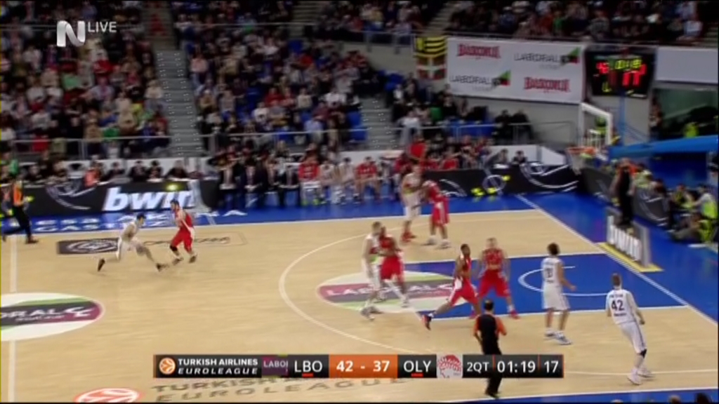 Ο Ολυμπιακός θα πρέπει να βελτιώσει την άμυνα του στο δεύτερο ημίχρονο αν θέλει να φύγει νικητής από την έδρα της Λαμποράλ Κούτσα. Οι “ερυθρόλευκοι” βρίσκονται στο -7 (44-37) στο ημίχρονο. Πρώτοι σκόρερ της ελληνικής ομάδας οι Σπανούλης και Ντάνστον με 12 πόντους.