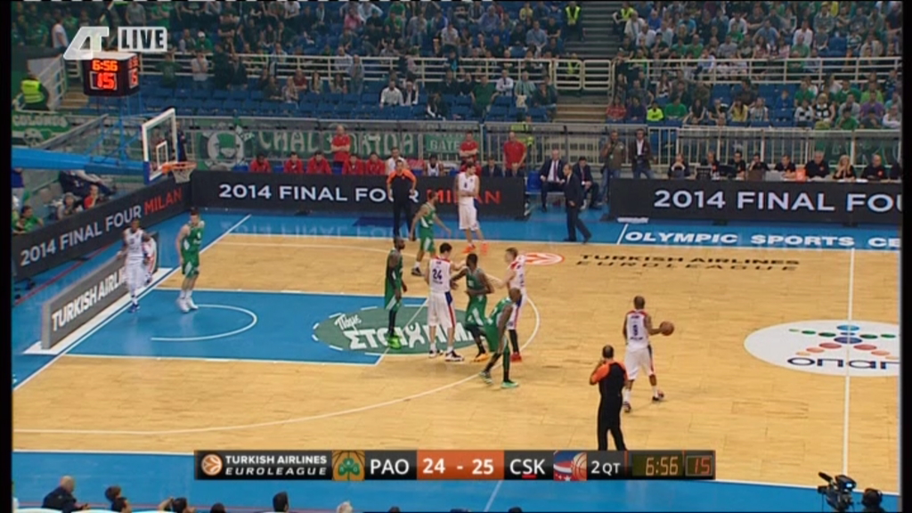 Μεγάλη μάχη γίνεται στο ΟΑΚΑ, όπου η ΤΣΣΚΑ προηγείται με 38-37 του Παναθηναϊκού στο ημίχρονο. Οι πρωταθλητές Ελλάδας βρέθηκαν στο -6, αλλά κατάφεραν με ένα σερί 5-0 να μειώσουν τη διαφορά. Πρώτοι σκόρερ της ελληνικής ομάδας οι Μασιούλις και Γκιστ με 9 και 8 πόντους, αντίστοιχα.