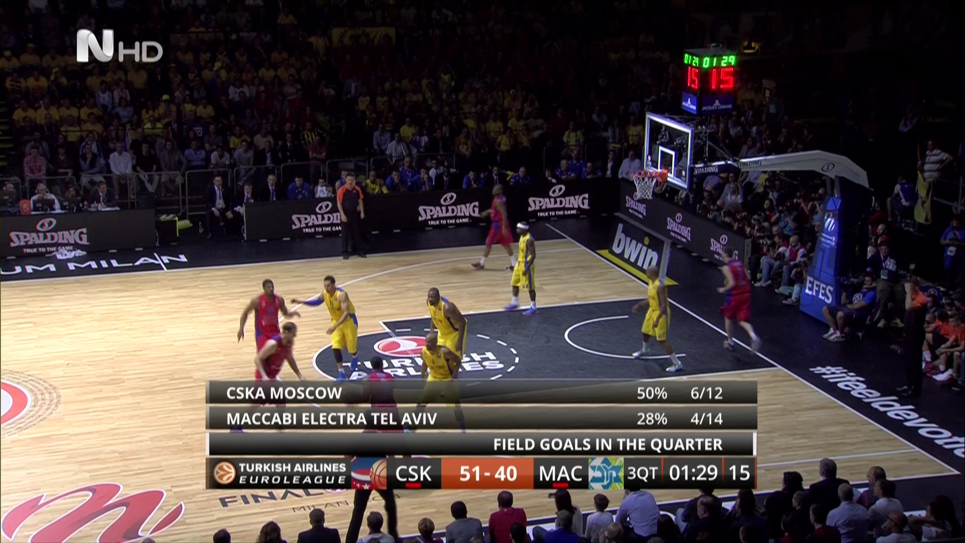 Η ΤΣΣΚΑ συνεχίζει να ελέγχει τον πρώτο ημιτελικό του Φάιναλ Φορ της Ευρωλίγκας κόντρα στη Μακάμπι. Οι Ρώσοι προηγούνται με 55-45 των Ισραηλινών έχοντας για πρώτο σκόρερ τον Καούν με 12 πόντους. Από τη Μακάμπι πρώτος σκόρερ είναι ο Μπλου με 9 πόντους.