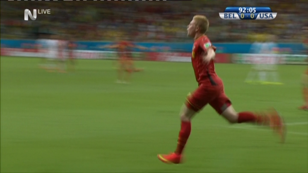 Με τέρμα του Ντε Μπρούιν το Βέλγιο προηγείται των ΗΠΑ στο τρίτο λεπτό του πρώτου ημιχρόνου της παράτασης. Ο Ντε Μπρούιν με δυνατό σουτ από τα πλάγια νίκησε τον Τιμ Χάουαρντ.