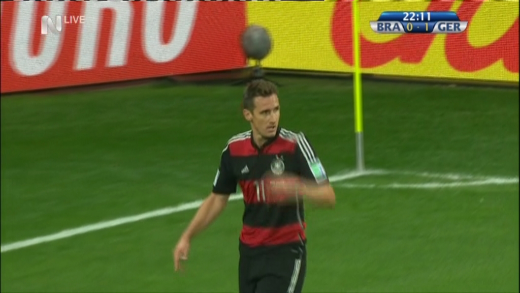 Με τον Μίροσλαβ Κλόζε στο 23′ η Γερμανία κάνει το 2-0 απέναντι στην Βραζιλία. Ο Κλόζε γίνεται ο πρώτος σκόρερ στην ιστορία των Μουντιάλ.