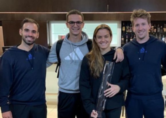 Θέλοντας να ευχαριστήσει τους δικούς της ανθρώπους για τη στήριξη μετά την ήττα από την Ανέτ Κονταβέιτ στον τελικό του Ostrava Open με 2-0 σετ, δημοσίευσε μία ομαδική φωτογραφία, στην οποία είναι και ο σύντροφός της, Κωνσταντίνος Μητσοτάκης. Μαζί τους ήταν και ο συναθλητής της, Γιάννης Στεργίου, ο προπονητής της Τομ Χιλ και ο Τζέισον Μάθιου.