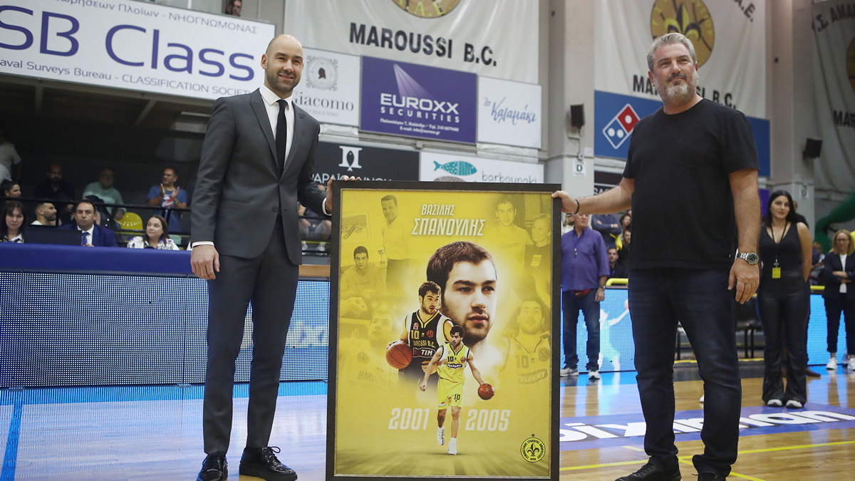 To Μαρούσι βράβευσε τον προπονητή του Περιστερίου, Βασίλη Σπανούλη, στην επιστροφή του στο κλειστό του Αγίου Θωμά, όπου αγωνίστηκε από το 2001 έως το 2005.