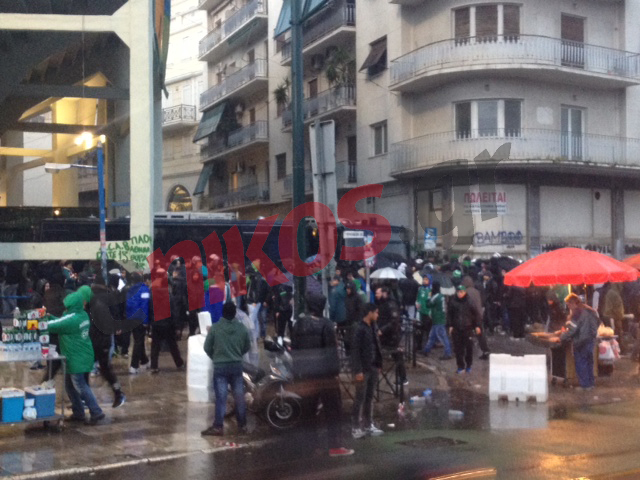 «Δρακόντεια» είναι τα μέτρα ασφαλείας έξω από το γήπεδο της Λεωφόρου Αλεξάνδρας με τους γύρω δρόμους να έχουν κλείσει από ισχυρές αστυνομικές δυνάμεις και κλούβες των ΜΑΤ. Παρά την έντονη βροχόπτωση έχει ήδη ξεκινήσει η προσέλευση των πρώτων φιλάθλων ενώ ο έλεγχος των εισιτηρίων ξεκινά από δυο σημεία περιμετρικά του γηπέδου.