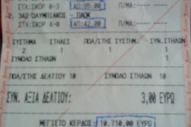 Η νίκη της ομάδας της πόλης του με 0-3 μέσα στη Βέροια, του έδωσε απόδοση 85,00 ενώ το 4-0 στο ντέρμπι του Γ. Καραϊσκάκης τον «πλήρωσε» με απόδοση 42,00.