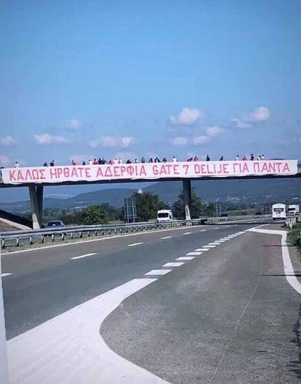 Με τον πλέον θερμό τρόπο καλωσόρισαν οι οπαδοί του Ερυθρού Αστέρα τους φίλους του Ολυμπιακού στο Βελιγράδι εν όψει της αναμέτρησης των δύο ομάδων την Τρίτη (1/10, 22:00) στο πλαίσιο της δεύτερης αγωνιστικής του Champions League.Ως γνωστόν οι σχέσεις ανάμεσα στους οπαδούς του Ερυθρού Αστέρα και του Ολυμπιακού είναι αδελφικές και οι φίλοι των Σέρβων φρόντισαν να τους καλωσορίσουν έχοντας αναρτήσει στις εθνικές οδούς που οδηγούν στο Βελιγράδι ένα πανό που αναφέρει: «Καλώς ήρθατε αδέρφια. Gate 7 Delije για πάντα».