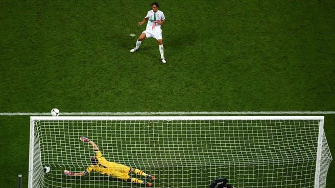 Ο Ινιέστα έδωσε το προβάδισμα στην Ισπανία, ο Πέπε ισοφάρισε, το 2-1 έκανε ο Πικέ, ενώ για την Πορτογαλία ισοφάρισε εκ νέου ο Νάνι.Το 3-2 για τους Ισπανούς πέτυχε ο Σέρχιο Ράμος με εκτέλεση α λα Πανένκα, ενώ μοιραίος για την Πορτογαλία αποδείχθηκε ο Άλβες ο οποίος σημάδεψε το οριζόντιο δοκάρι του Ίκερ Κασίγιας.