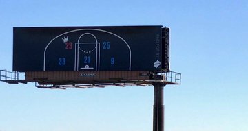 Μάλιστα υπάρχουν τρεις πινακίδες στημένες με αυτό το θέμα. Στη πρώτη υπάρχουν τα νούμερα τεσσάρων βασικών παικτών των Σίξερς μαζί με το 23 του Τζέιμς, το οποίο έχει και μία κορώνα από πάνω.