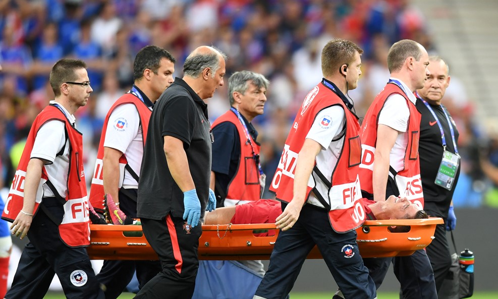Άτυχος στάθηκε ο Κριστιάνο Ρονάλντο στον τελικό του EURO που βρίσκεται σε εξέλιξη. Ο σούπερ σταρ της Πορτογαλίας δέχθηκε ένα μαρκάρισμα από τον Παγιέ στο 8ο λεπτό. Μετά από λίγο βγήκε από τον αγωνιστικό χώρο με τους υπεύθυνους του ιατρικού τιμ να του δένουν το πόδι, αλλά άντεξε μέχρι το 25ο λεπτό. Σε εκείνο το σημείο αποχώρησε με φορείο με τους Πορτογάλους, αλλά και αρκετούς Γάλλους να τον χειροκροτούν.