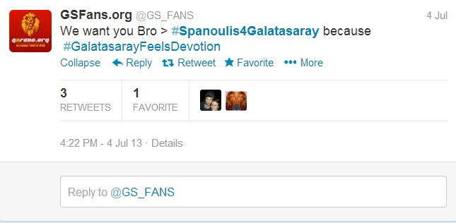 Παράλληλα, το ίδιο κάνουν και οι οπαδοί της Γαλατασαράι.Tο #Spanoulis4Galatasaray κάνει τον κύκλο του διαδικτύου, μέσω του οποίου οι οπαδοί προσπαθούν να πείσουν τον 31χρονο γκαρντ έρθει στην Πόλη.