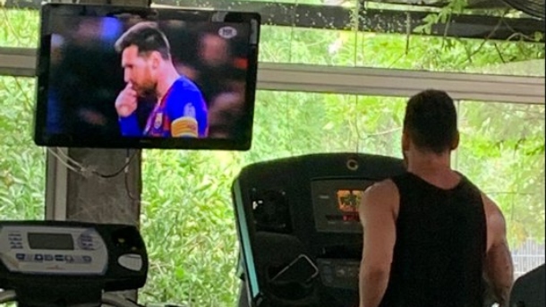 Η συγκεκριμένη γυναίκα απαθανάτισε τον Λιονέλ Μέσι να παρακολουθεί στην τηλεόραση highlights και γκολ από τη φετινή σεζόν με τους “μπλαουγκράνα”, την ώρα που χρησιμοποιούσε τον διάδρομο.
