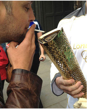 Κάποιος διερχόμενος θέλησε ν’ ανάψει το τσιγάρο του. Φαίνεται πως ελλείψει αναπτήρα αποφάσισε να χρησιμοποιήσει γι’ αυτο το σκοπό την Ολυμπιακή Φλόγα…