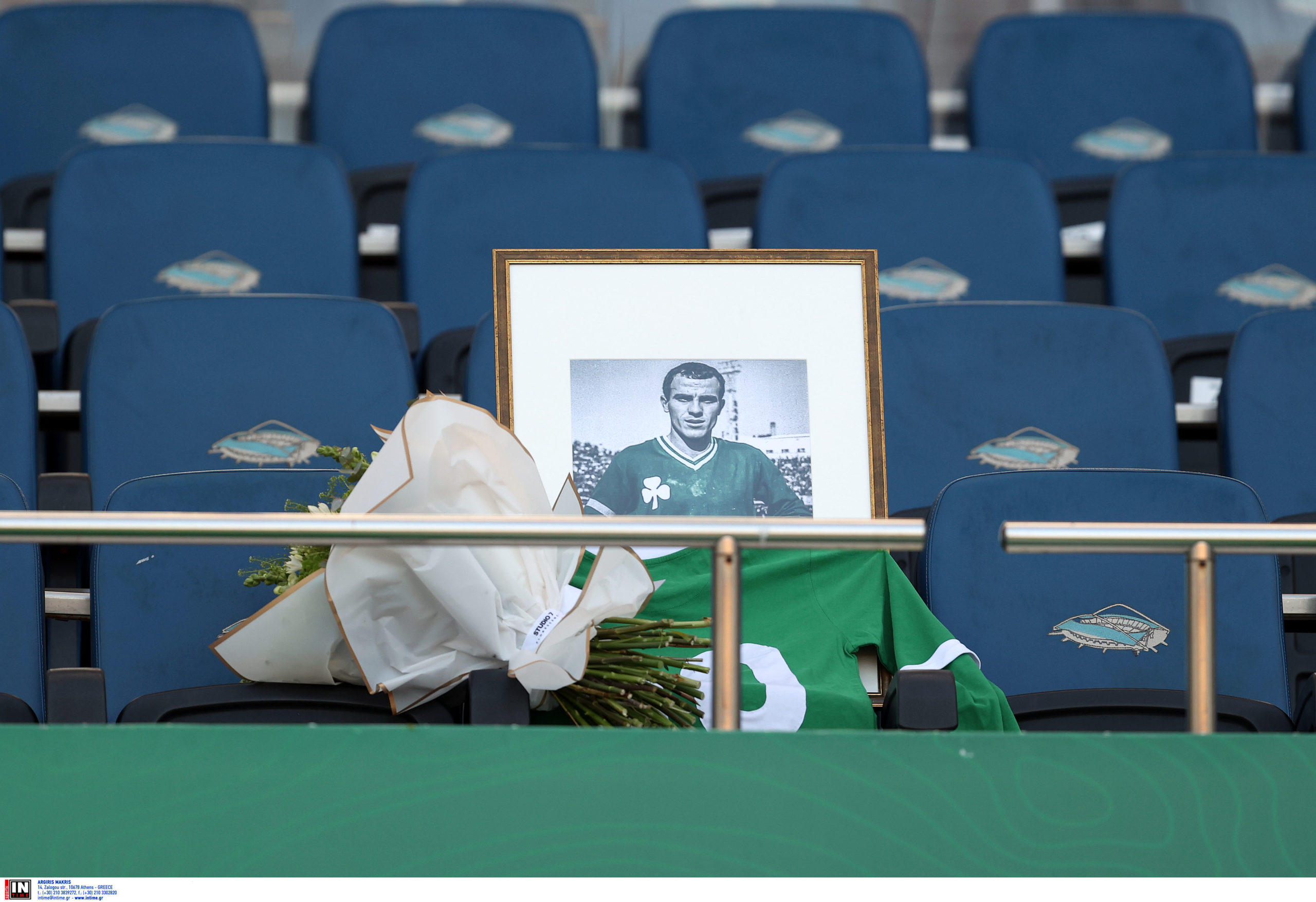 Εκεί βρισκόταν πλέον η μικρότερη κόρη του «Στρατηγού», Πόπη Δομάζου, έχοντας δίπλα της μία μεγάλη φωτογραφία του πατέρα της με τη φανέλα του «τριφυλλιού» απ’ την εποχή που μεσουρανούσε στα γήπεδα σαν ποδοσφαιριστής.