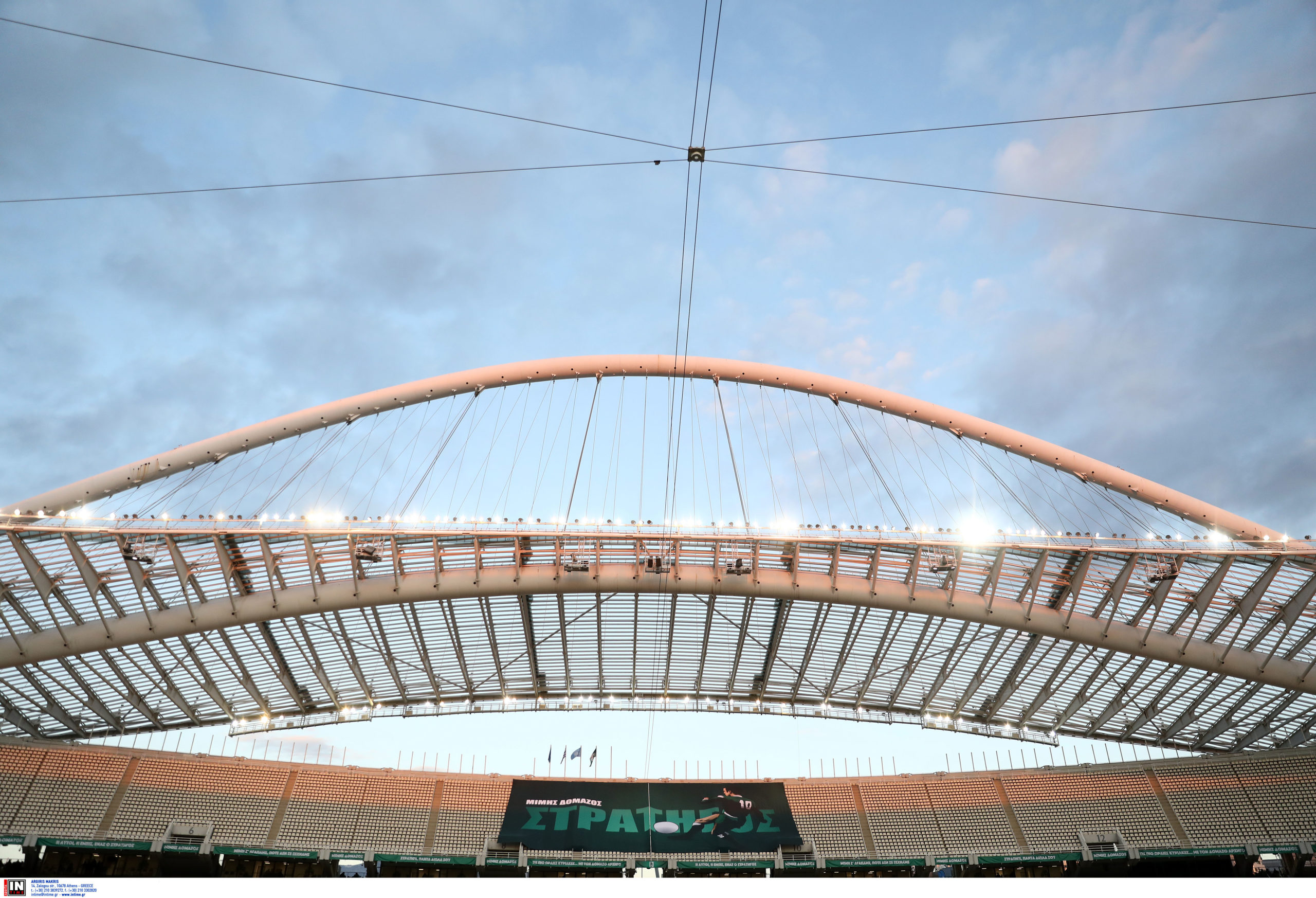 Πριν από τη σέντρα όλη η ποδοσφαιρική ομάδα του Παναθηναϊκού πέρασε μπροστά απ’ τη φυσούνα όπου υπήρχε μία μεγάλη φωτογραφία του «Στρατηγού» και λουλούδια, ακριβώς κάτω απ’ τη θέση στα VIP που καθόταν πάντα ο Μίμης Δομάζος μαζί με τον «Διόσκουρό» του Αντώνη Αντωνιάδη κι έβλεπαν παρέα τους αγώνες του αγαπημένου τους Παναθηναϊκού.