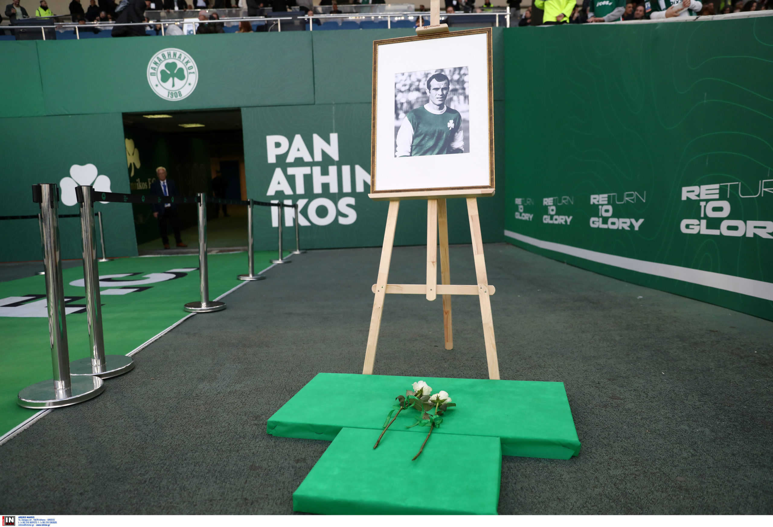 Την ίδια ώρα οι χιλιάδες φίλοι του Παναθηναϊκού σήκωσαν πράσινα χαρτόνια που είχαν γραμμένα τον αριθμό 10 προς τιμήν του «Στρατηγού», ενώ οι παίκτες των «πράσινων» όταν μπήκαν για ην επίσημη είσοδό τους στο γήπεδο, φορούσαν φανέλες της ομάδας του Γουέμπλεϊ με το 10 στην πλάτη.