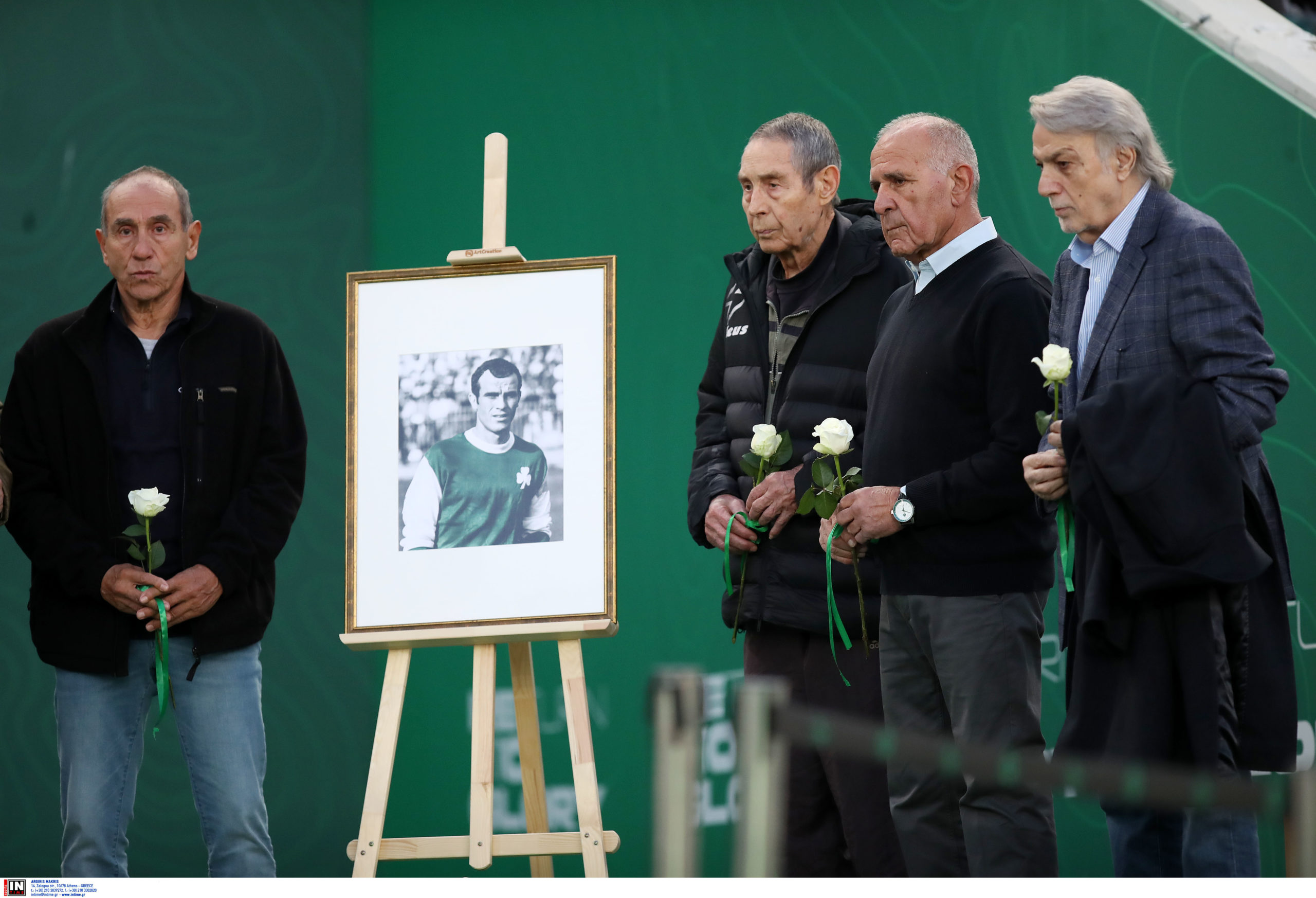 Όλοι οι παίκτες πέρασαν μπροστά απ’ το σημείο για να αποτίσουν φόρο τιμής, ενώ τελευταίοι πέρασαν οι παλαίμαχοι άσοι του Παναθηναϊκού απ’ την ομάδα του Γουέμπλεϊ, που «αποχαιρέτισαν» με τη σειρά τους τον φίλο και συμπαίκτη τους.