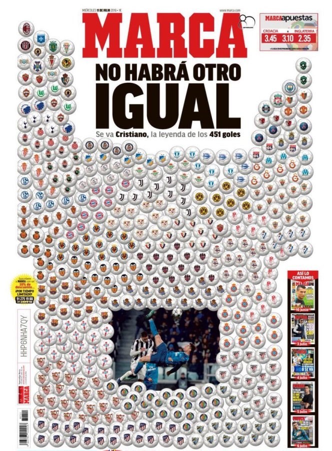 Ασύλλυπτη έμπνευση και δημιουργία από την ισπανική εφημερίδα «Marca» που είπε το δικό της «ευχαριστώ» στον Κριστιάνο Ρονάλντο, ο οποίος έφυγε από τη Ρεάλ Μαδρίτης ύστερα από εννιά χρόνια.