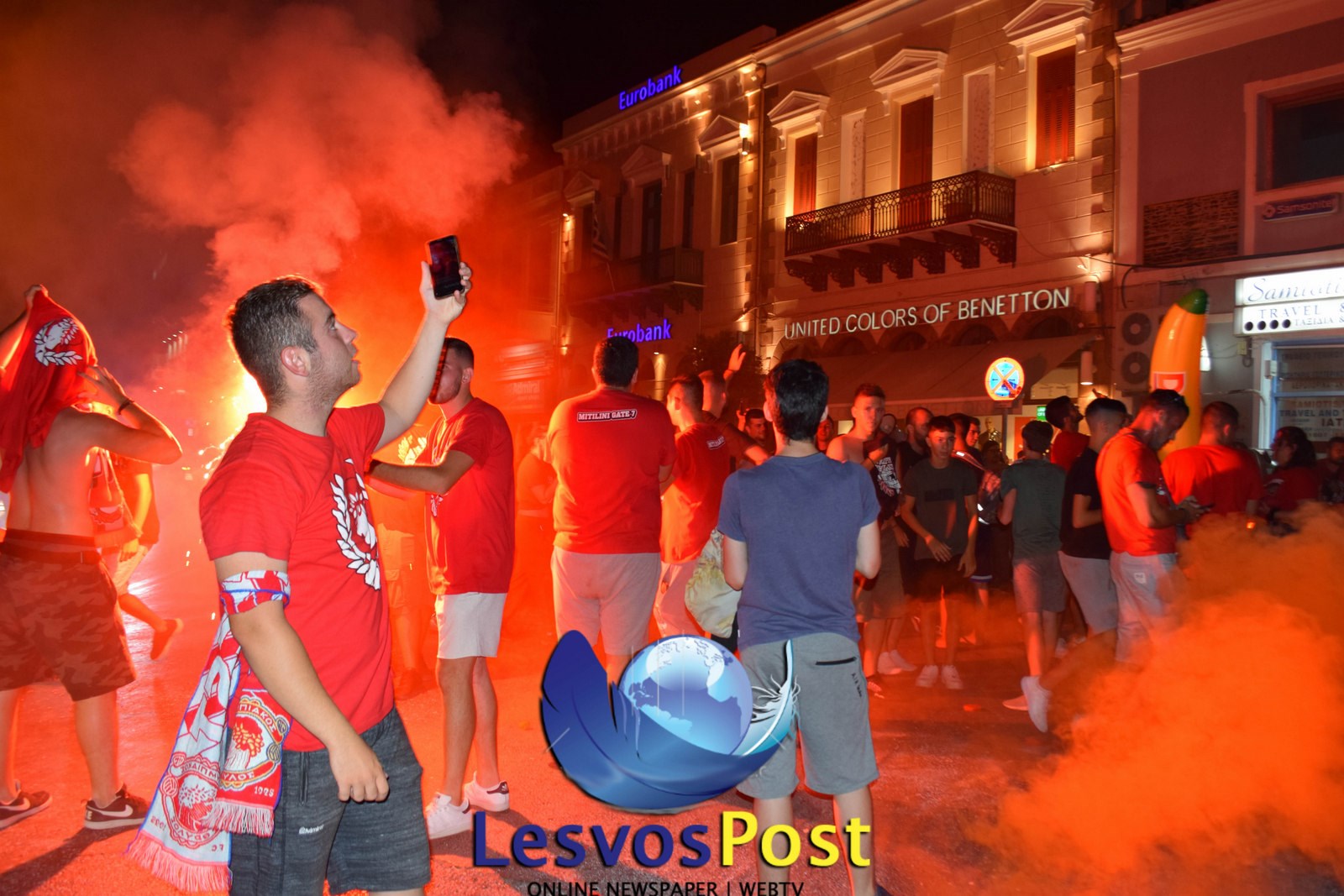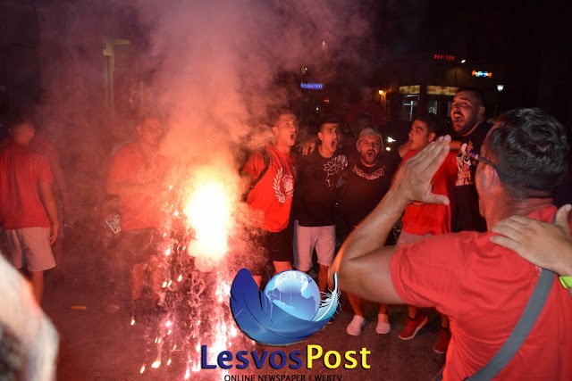 Στους δρόμους της Μυτιλήνης βγήκαν φίλοι του Ολυμπιακού μετά τη νίκη επί της ΑΕΚ και το σφράγισμα του 45ου πρωταθλήματος. Οι ερυθρόλευκοι επικράτησαν εύκολα της ΑΕΚ στο «Γ. Καραϊσκάκης» στην τελευταία αγωνιστική των play off με 3-0.