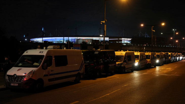 Παράλληλα, η αστυνομία του Παρισιού έχει κατατάξει τον αγώνα στις εκδηλώσεις υψηλού κινδύνου και έχει επιστρατεύσει 4.000 αστυνομικούς για την προστασία του, εκ των οποίων οι 2.500 βρίσκονται σε περιμετρική επιτήρηση του σταδίου. Περίπου 20.000 θεατές θα παρακολουθήσουν την αναμέτρηση στο Στάδιο της Γαλλίας, καταλαμβάνοντας το ένα τέταρτο της χωρητικότητάς του. Για λόγους ασφαλείας, έχουν τοποθετηθεί μεταλλικά κιγκλιδώματα γύρω από τον αγωνιστικό χώρο, αποτρέποντας οποιαδήποτε πιθανότητα εισόδου στο γήπεδο.