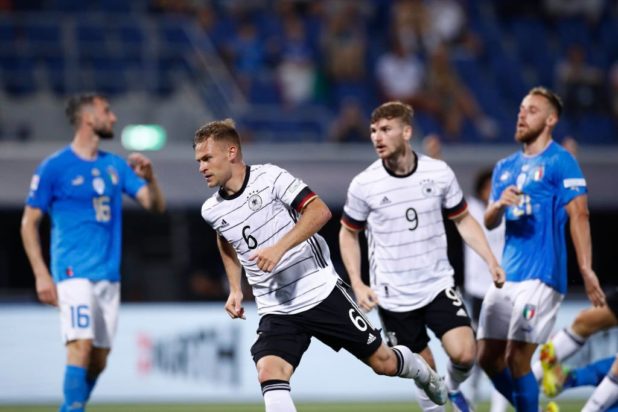 Τρία 24ωρα μετά τη βαριά ήττα από την Αργεντινή με 3-0 στον τελικό του Finalissimma, στο Γουέμπλεϊ του Λονδίνου, η Ιταλία παρότι προηγήθηκε με τον Πελεγκρίνι στο 70΄, τρία λεπτά μετά δέχτηκε την ισοφάριση από τον Κίμιχ, με το 1-1 να μένει έως το τέλος του αγώνα.