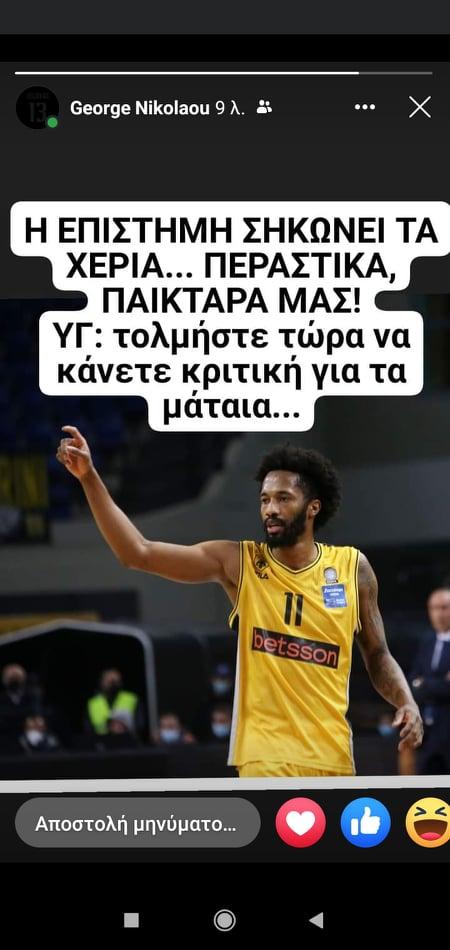 «Η επιστήμη σηκώνει τα χέρια… Περαστικά παικταρά μας. Υ.Γ Τολμήστε να κάνετε κριτική τώρα για τα μάταια…» έγραψε.