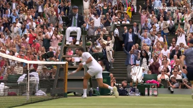 Κατά τη διάρκεια του πέμπτου σετ του τελικού ο Κάρλος Αλκαράθ μετά από έναν μεγάλο πόντο κατάφερε να σπάσει το σερβίς του Τζόκοβιτς με τον Σέρβο να χτυπά τη ρακέτα του πάνω στο στύλο του φιλέ.
