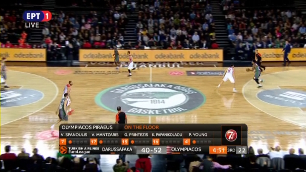 Ο Ολυμπιακός βρέθηκε και στο +12 κατά τη διάρκεια του τρίτου δεκαλέπτου (40-52), αλλά η Νταρουσάφακα κατάφερε να μειώσει τη διαφορά στους 6. Πρώτοι σκόρερ της ελληνικής ομάδας οι Λοτζέσκι και Πρίντεζης με 13 πόντους.